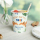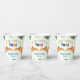 Funny dinosaur 2nd birthday party paper cups with green blue and orange colour scheme and safari theme.  Personalise it with your event details.  Unisex design for a boy or girl.