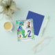 For the boy who’s turning two and who loves dinosaurs. This Roaring T-Rex invites Dino fans to a fun 2nd birthday party. Personalise this colourful watercolor splash blue and green second birthday invitation with a photo of the birthday boy, the number of the birthday and the party details and you are all set for a fun packed dinosaur themed dino birthday. All dinosaur species are welcome. Unique beautiful original artwork by artist Catherine Sweetman