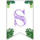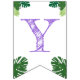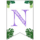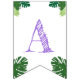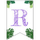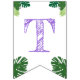 Funny dinosaur 2nd birthday party bunting flag banner with pink and purple watercolor tyrannosaurus rex and green leaves. Great for a prehistoric girl's bday party.