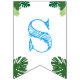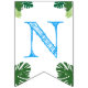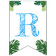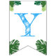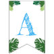 Funny dinosaur 3rd birthday party bunting flag banner with blue watercolor tyrannosaurus rex and green leaves. Great for a prehistoric boy's bday party.
