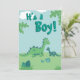It's a boy! Dinosaur, baby boy invitation with dino mum and kid. Prehistoric landscape with dnosaurs eggs baby shower invitation.