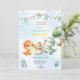 Roar into celebration with this adorable Dinosaur Baby Shower invitation! Featuring playful dinosaur illustrations, vibrant colours, and whimsical details, this invitation is perfect for a baby shower filled with fun and adventure. Customise the details to make it uniquely yours, and invite your guests to a dino-mite celebration as you prepare to welcome your little one. Ideal for a dinosaur or prehistoric-themed baby shower, this invitation sets the tone for a memorable and joy-filled event.