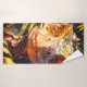 This bath towel has a dinosaur on it.
