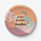 Dinosaur birthday cake neutral pink orange Paper Plates - These cute illustrated dinosaur friends are ready for cake, they sure love to eat, but they brought a present how sweet. Customise these adorable plates with your text. Mix and match with the other items from this collection.
