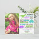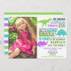 Dinosaur birthday girl purple green teal photo invitation