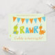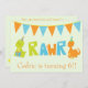 These lovely dinosaur themed birthday invitations is great for the dinosaur lover. The front features a light blue/green background with an orange and blue banner at the top. Below is "RAWR" written in colourful matching text. To the right and left of the image are dinosaurs. Sample text: "Michael is turning 6!" written using a template below the graphics. The back has all of the information for your party.