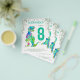 For the child that loves dinosaurs this Roaring colourful T-Rex and cute stegosaurus invite Dino fans to a 8th birthday party for dinosaur lovers. Personalise this colourful psychedelic Tyrannosaurus and stegosaurus invitation by adding the name of the birthday boy or girl, the number of the birthday and the party details and you are all set for a fun packed dinosaur teal green themed dino birthday. All dinosaur species are welcome. Prehistoric jurassic era Dinosaur illustrations, original artwork by artist by Catherine Sweetman