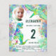 A fun colourful modern dinosaur 2nd birthday party budget invitation for the child who loves dinos. These colourful Roaring T Rex and flying pterodactyl invite Dino fans to a second birthday party. Blue teal orange purple and green watercolor splash background with Tyrannosaurus rex and pterodactyl in vibrant blue green and teal Personalise this multicolored psychedelic dinos design with a photo, the number of the birthday and the party details and you are all set for a fun packed dinosaur themed dino birthday. All dinosaur species are welcome. Original artwork Illustration by Catherine Sweetman