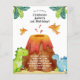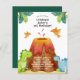 Fun dinosaur theme birthday invitation with cute trex, brontosaurus and pterodactyl. The volcano in the centre is great! Add your special bday kid's name and age along with party information to personalise. See coordinating item in our shop, Enchanted Finch.