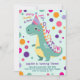 An adorable dinosaur cartoon for your kid's birthday party is here to tell you to stomp, chomp and roar and party like a dinosaur! Cute with modern teal, pink, orange and purple polka dots!