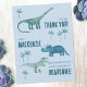 Time to thank your guests for a wild birthday party! A fun bunch of adorable dinosaurs, ready to customise with your child's name and thank you message. Great for any age boy or girl. The back is blank for your own message (apart from a tiny Tyrannosaurus Rex who has sneaked in). Original art by Nic Squirrell.