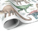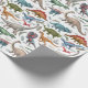 Jurassic themed birthday wrapping paper featuring a white background that can be changed to any colour, and watercolor dinosaurs, rocks, foliage, & grass.