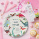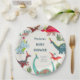 A cute hand painted dinosaur paper plate for a baby shower or birthday party. Original artwork by Caroline Bonne Müller.