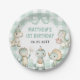 Dinosaur Blue Gingham 1st Birthday Party Paper Plate