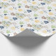 Dinosaur Blue Green Boy Birthday Name Text Wrapping Paper