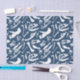 Blue and white Dinosaur bones repeating pattern! Dinosaurs featured in this design include: Tyrannosaurus Rex, Allosaurus, Parasaurolophus, Triceratops, Brachiosaurus, Spinosaurus, and Velociraptor.