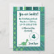 Dinosaur birthday invitation with polka dot, stripes patterns. Green/blue dino invitation card. Customise it