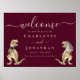 Dinosaur Burgundy Blush Pink Wedding Welcome Poster
