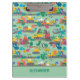 Dinosaur Construction Kids Personalised Pattern. Adorable dinosaurs doing roadwork on a green background.