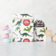 Dinosaurs Custom Name Christmas Wrapping Paper features photography of little toy dinosaurs in red Santa hats with the saying "Merry Christmas". Personalise it with your child's name inside of the red circle! A fun, festive Christmas giftwrap for little dinosaur lovers!