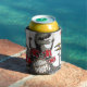Dinosaur Drums Playing Vintage Illustration Can Cooler