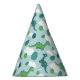 Cute dinosaurs and eggs in the sky. Baby blue/green/mint paper party hats for boys and girls