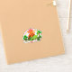 A beautiful cartoon illustration of an extinct long necked green dinosaur standing in front of an island volcano that is erupting behind him. A rainbow appears above the volcano and the Dino is standing amongst green grass; white flowers and rocky stones. There is a text template for your personalised wording that appears below the dinosaur. Ideal for boys theme party favours.