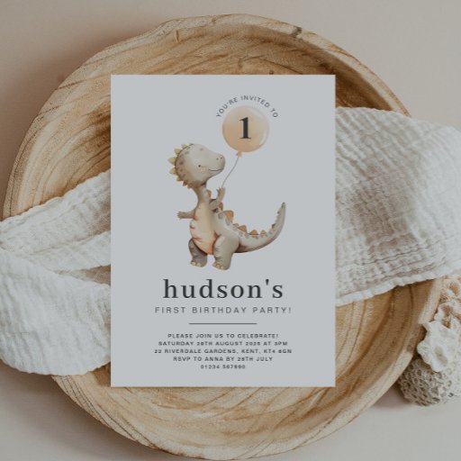 A dinosaur holding a balloon, perfect for your Roar-some dinosaur themed party! You can change the number 1 in the balloon to any number, or remove the number if you prefer.