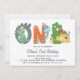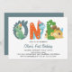 Invite your family and friends to celebrate your son's first birthday with these cute Dinosaur Invitations. This design features typography script one with colourful dinosaurs. Perfect for Dino party theme.