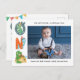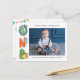 Modern, colourful and elegant boy first birthday thank you card. Design featuring Dino script one , thank you message and a photo. Perfect as a thank you for Dinosaur themed first birthday party.