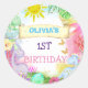 Dinosaur Floral Glitter Baby Girl 1st Birthday Classic Round Sticker