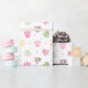 Wrapping paper for a girl Birthday featuring colourful doodle dinosaur footprints in pink and pastel colours all on the white background. - Kate Eden Art