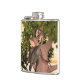 Well made flask, a little better than I had expected. Flask came in clear plastic box which gave it a nice presentation when I took it out of the zazzle packaging. Image is not printed on flask but on sticker. Don't know how this will hold up I haven't used it yet. This would make a Great gift! I plan to purchase more for friends! Cheers. I thought a little brighter than computer. Very crisp, writing wasn't