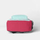 Girl's backpack featuring dinosaurs shapes in pink shades on a light turquoise blue background, with the dark pink sides and bottom. Easily personalise the text. The text 'roar' you can leave or just leave it blank. :) Great for summer vacation, or as a school bag and more - Kate Eden Art
