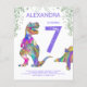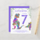 Celebrate the girl that loves dinosaurs turning seven with this Roaring pink and purple colourful T-Rex and cute stegosaurus inviting Dino fans to a 7th birthday party. Personalise this colourful psychedelic Tyrannosaurus and stegosaurus Jurassic jungle invitation by adding the name of the birthday boy or girl, the number of the birthday and the party details and you are all set for a fun packed dinosaur purple themed dino birthday. All dinosaur species are welcome. Prehistoric jurassic era Dinosaur illustrations, original artwork by artist by Catherine Sweetman