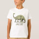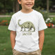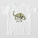 Cute kids' dinosaur tee shirt. The design includes a dinosaur illustration and custom name printed below it. Great tee for any kid that loves dinosaurs.