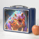 This is a standard metal lunchbox that appears to work just fine. We designed this box ourselves with an uploaded photo and custom text on the front and back. It looks absolutely beautiful except the front of the lunchbox is not centered like it shows in the photo. The print borders don't align with the inset flat part of the box where the preview photo online showed it perfectly centered in there. The back looks nice and centered though.