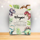 Get ready for a ROAR-some prehistoric party! This editable dinosaur birthday invitation features friendly T-Rex, Triceratops, and Stegosaurus characters in a vibrant jungle scene. The perfect start to planning a dinosaur themed birthday party for kids.