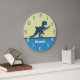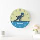 Dinosaur Navy Blue Green Teal Wall Clock