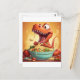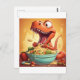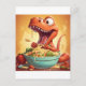 A digital illustration of a cartoon dinosaur eating noodles in a sloppy way.