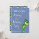 Dinosaurs are back. The Jurassic creatures are back to celebrate a cute boys birthday.The Dinosaur is green and yellow and has a background of blue .