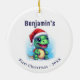 Mark the magic of a first Christmas with our adorable dinosaur-themed ornament. This charming keepsake captures the joy of the season, featuring a cute dinosaur decked out in festive cheer. Hang it proudly on your tree and celebrate the beginning of many happy holiday traditions with your little one.