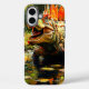 This phone case has a dinosaur pictured on it.