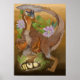 Fantastical Raptor Dinosaur digital painting poster print, Great for any paleo enthusiast and dinosaur fan! This amazing art print is great for decorating all sorts of spaces. Lovely prehistoric paleo art, this feathery raptor is surrounded by ferns, ancient ginko leaves and magnolia type flowers and other ancient looking plants. Perhaps as much fantasy as science to this art, the flora and fauna will bring a blast imagination of ancient life to were ever you decide to display it