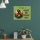 Fun kid's dinosaur themed birthday party poster sign features T-Rex with sunset and tropical plants on green background.