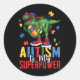 Dinosaur Rex Autism Is My Superpower Autism Awaren Classic Round Sticker