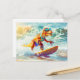 Cool dinosaur surfing a big wave with sunglasses and style. Energetic and humourous prehistoric summer fun.