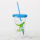 Green t-rex dinosaur boy's Birthday party acrylic tumbler glass gift. Personalizable drinkware for home, school, parties etc. Fun transparent plastic drinking cups for friends and family. Add your own name or funny quote. Includes blue lid and straw. Other colours available too. Prehistoric animal design for kids. Create one for son, little brother, grandson, nephew etc. Wild Pre historic t-rex animal cartoon illustration for children. Tyrannosaurus rex.