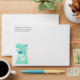 Cute envelope for your child's dinosaur theme birthday party! Illustration of a green dinosaur wearing a party hat on the bottom left corner with a typography font on his body that says "RAWR!" Customise this product by adding your address on top left. Great for a boy's birthday party.