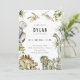 Cool dinosaur theme, birthday party invitation. Watercolor prehistoric foliage and dinosaur border.